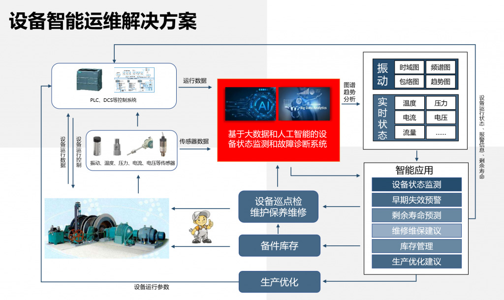 狀態(tài)監(jiān)測 系統(tǒng)系統(tǒng)采集設(shè)備控制器和傳感器的數(shù)據(jù),經(jīng)由先進(jìn)網(wǎng)絡(luò)技術(shù)將數(shù)據(jù)上傳到云端或者本地服務(wù)器,運(yùn)用大數(shù)據(jù)和人工智能算法對(duì)數(shù)據(jù)進(jìn)行處理和分析,